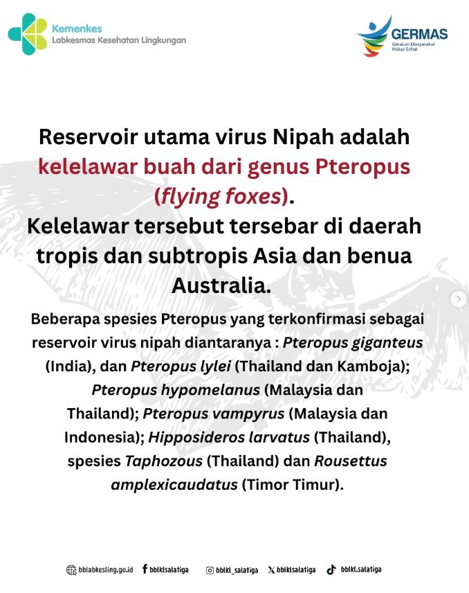 2. Sendow, I., dkk. (2013) – Virus Nipah pada Kelelawar Buah Pteropus vampyrus di Sumatera, Indonesia. Indonesian Journal of Biology, 5(1), 35–44.